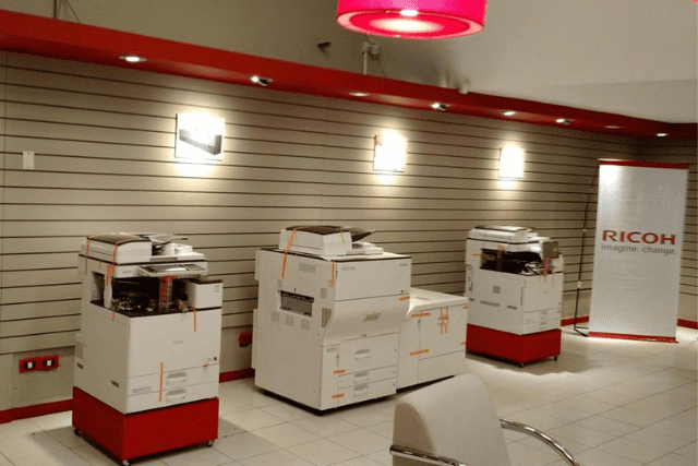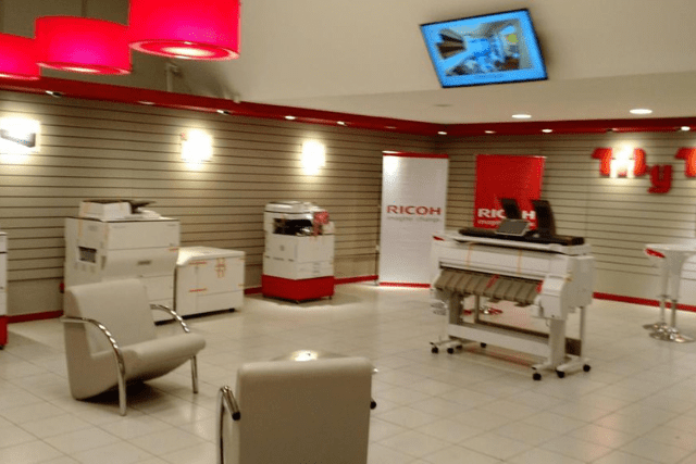Proyecto de interiorismo para diseño de interior del departamento Showroom de Máquinas impresoras.
