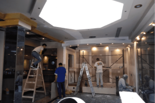 Se revistieron muros en falso ladrillo londinense, para llevar sus paredes a los legendarios rincones de Londres.
